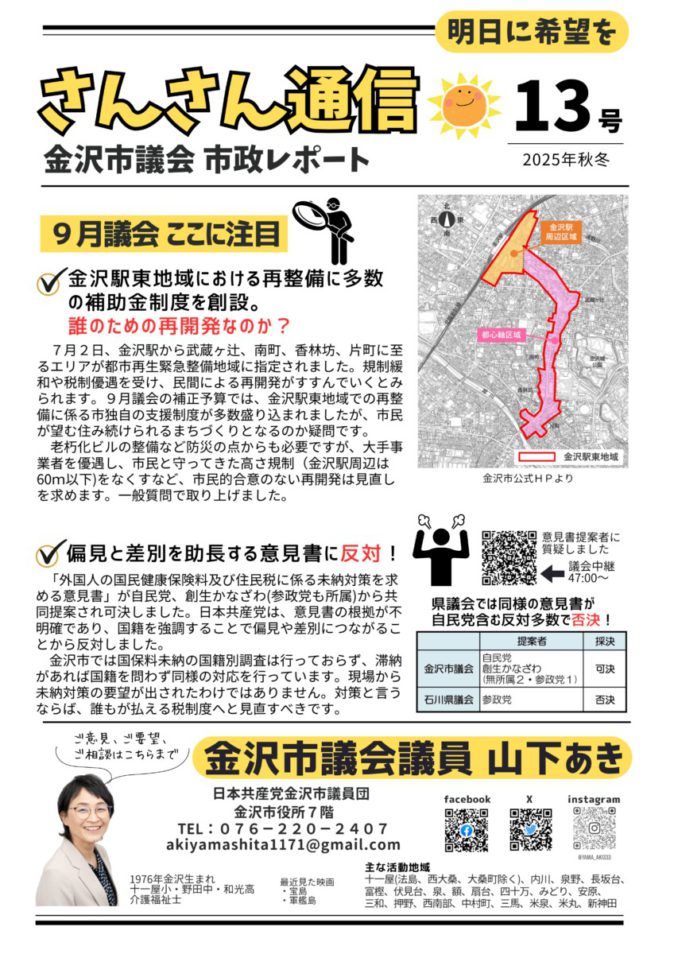 © 2010 - 2025 日本共産党 金沢市議員団